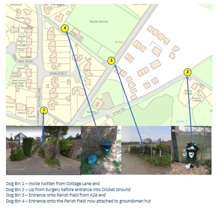 - Dog Bin 3 – On the Parish Field near the entrance from A28