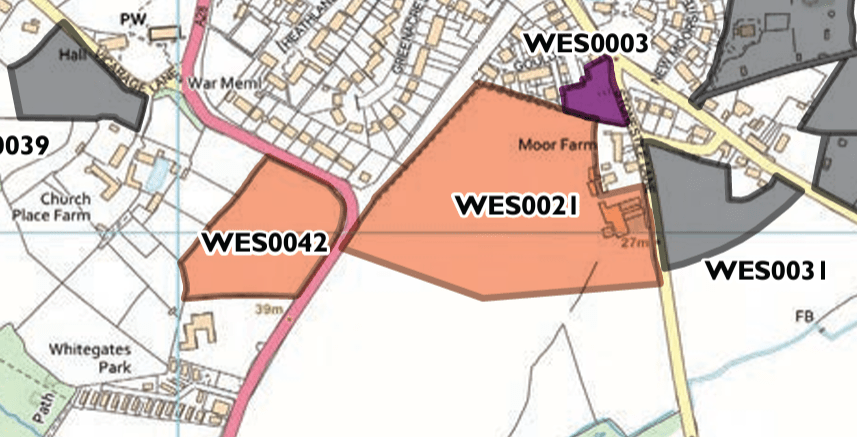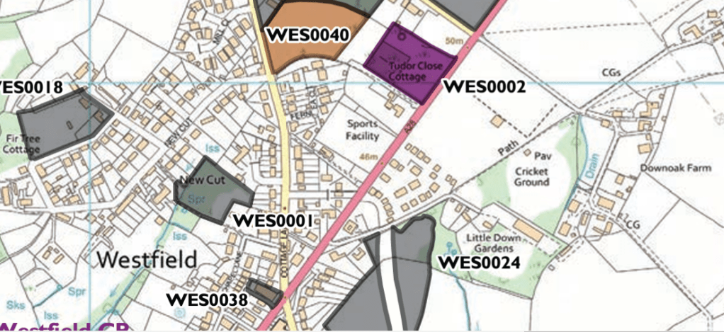 - What ‘Proposed Sites’ have been identified in Westfield Parish for delivering an extra 50 houses?